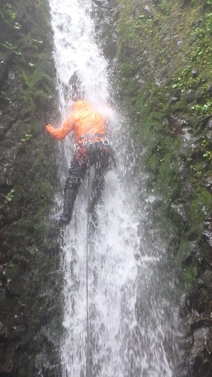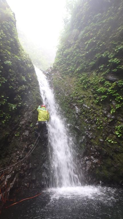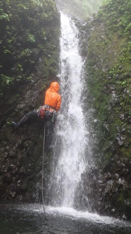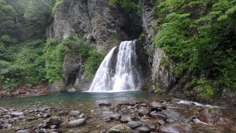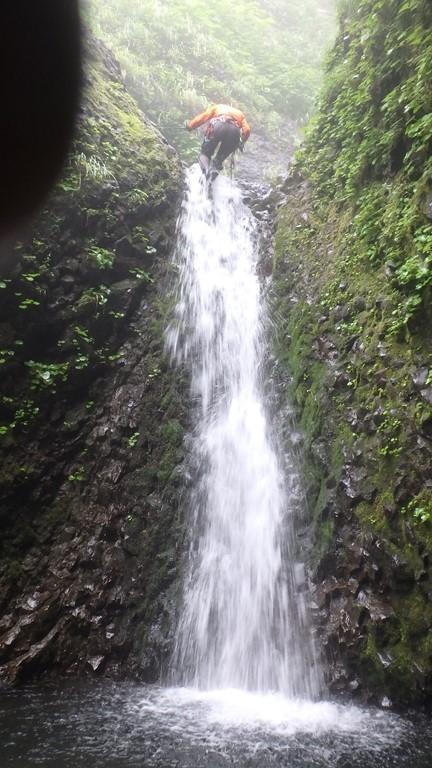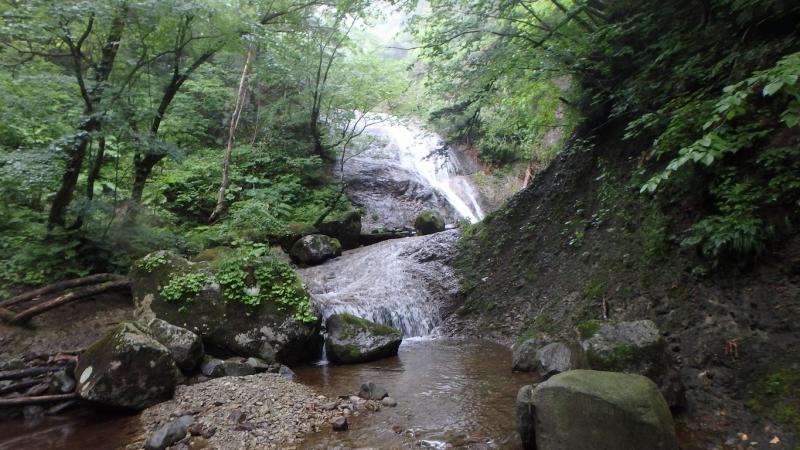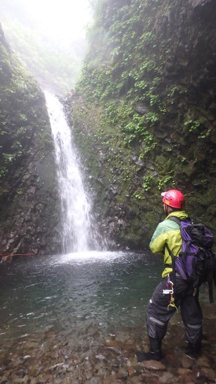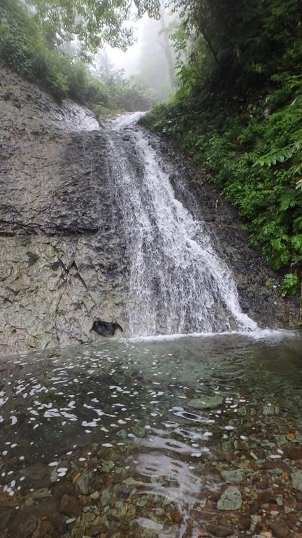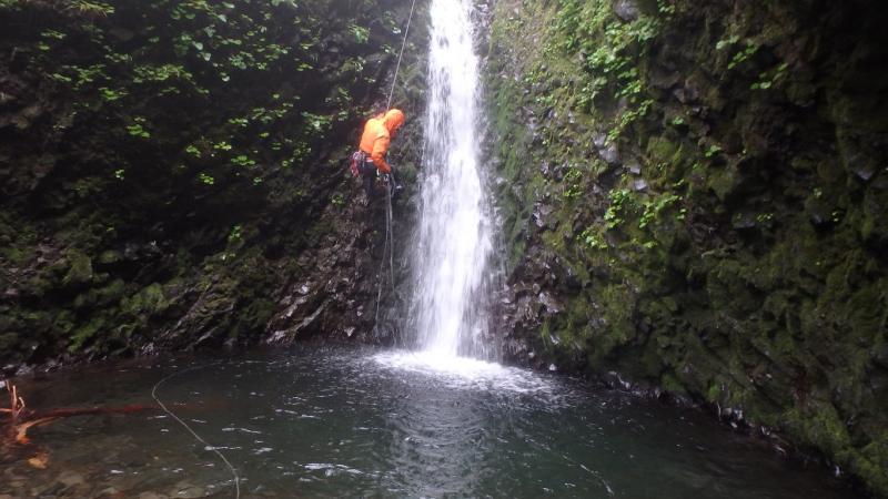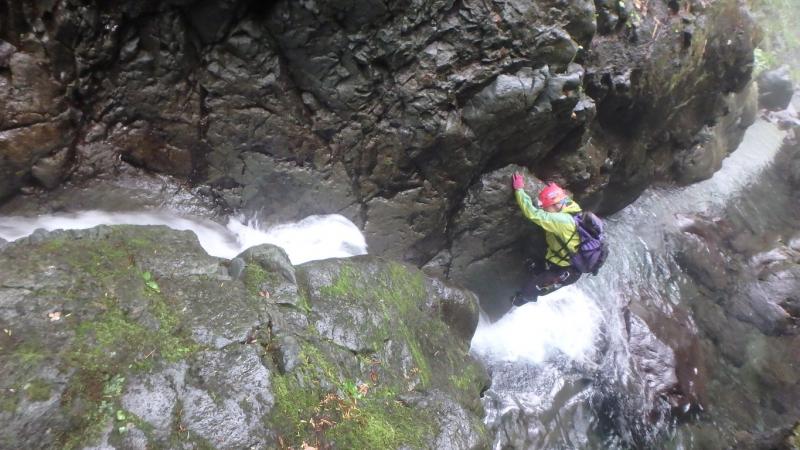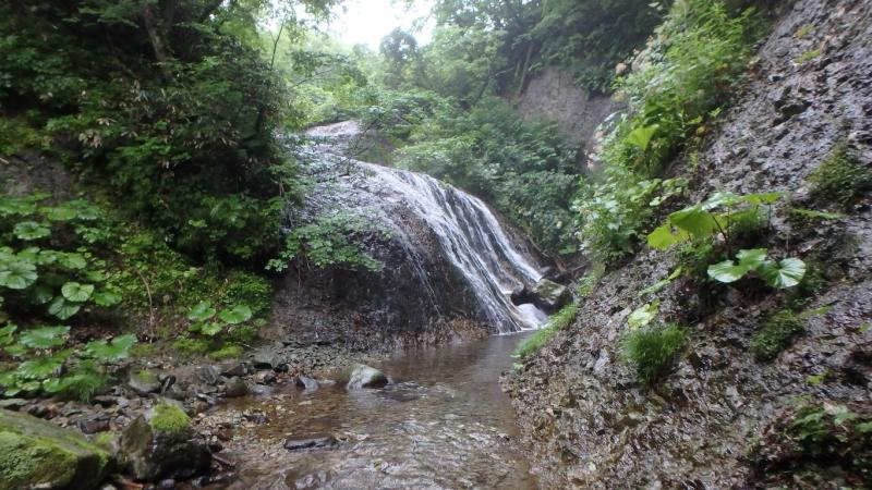 まずは三重の沢から砥石の沢に抜けました。水量が少ないながらも綺麗なナメ滝もあり、意外と楽しめます。さらに白老川右股沢を途中まで遡行。中間部にへつりの面白い函と滝があり楽しめます。そして最後にまだ時間があったので大星沢本流のF1まで行くことにしました。この本流はF1こそが核心部、7mの滝を豪快にシャワーを浴びて登りきりました。このF1の上も滝が続い面白そうでしたが、それはまたいつかの楽しみに取っておくことにしました。