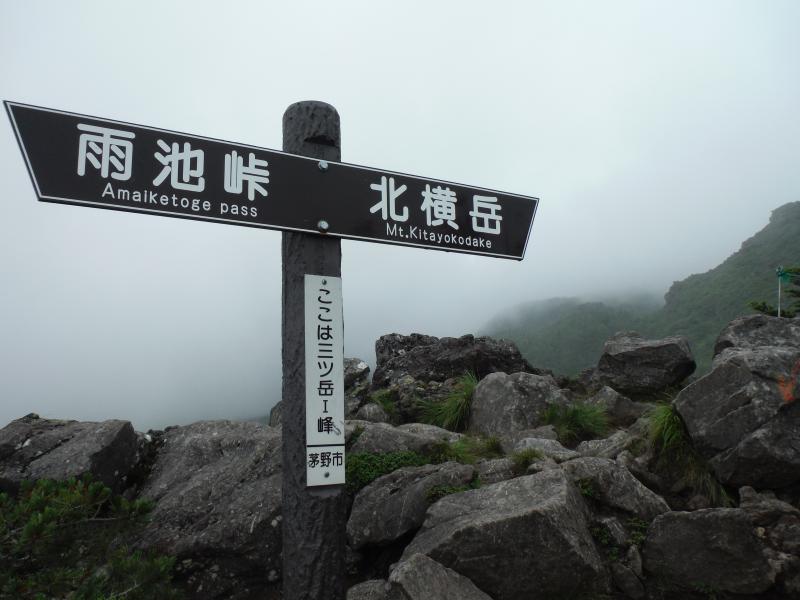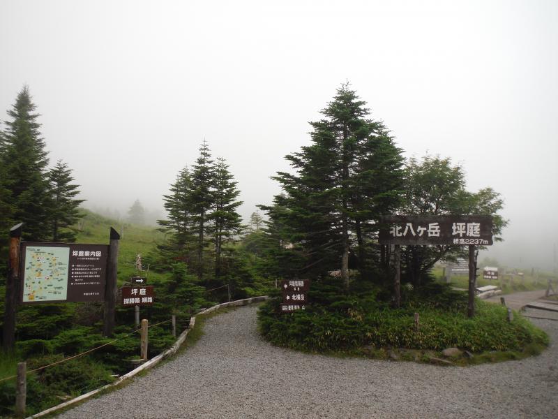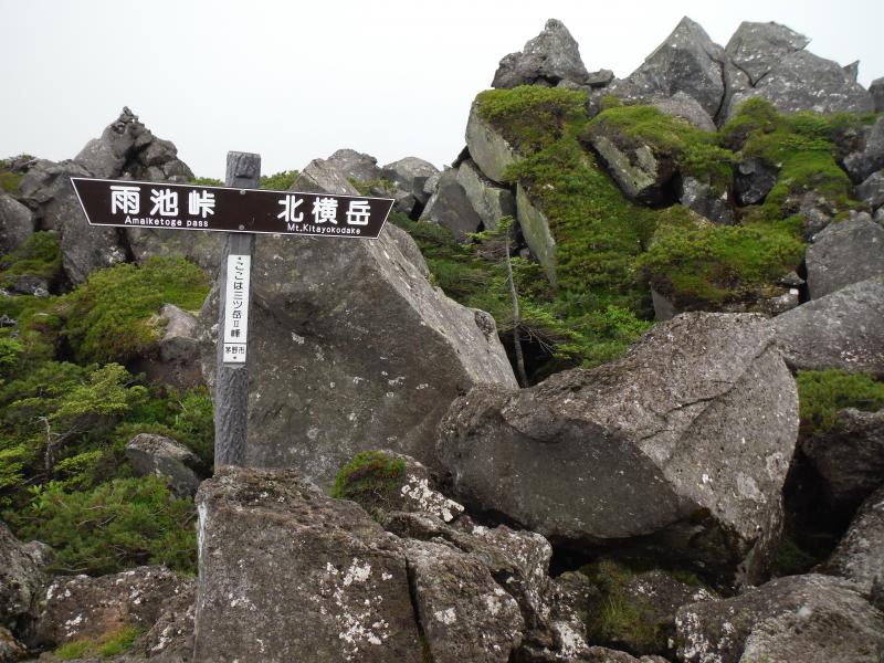 到着した北横岳頂上はガスの中で景色は全く見えませんでしたが、