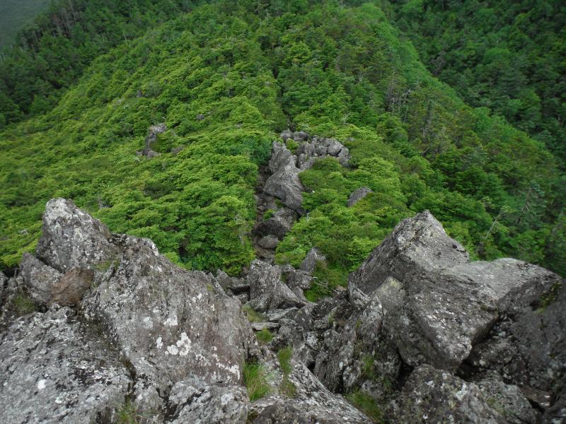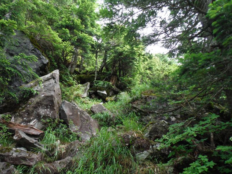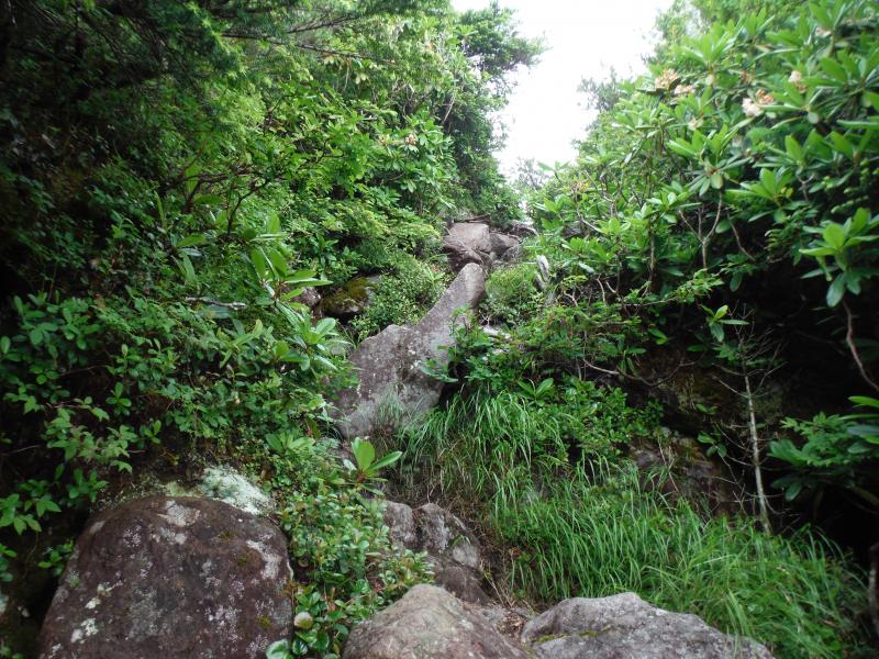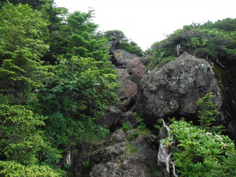 三ツ岳への登山道は更に大きな岩がゴロゴロした