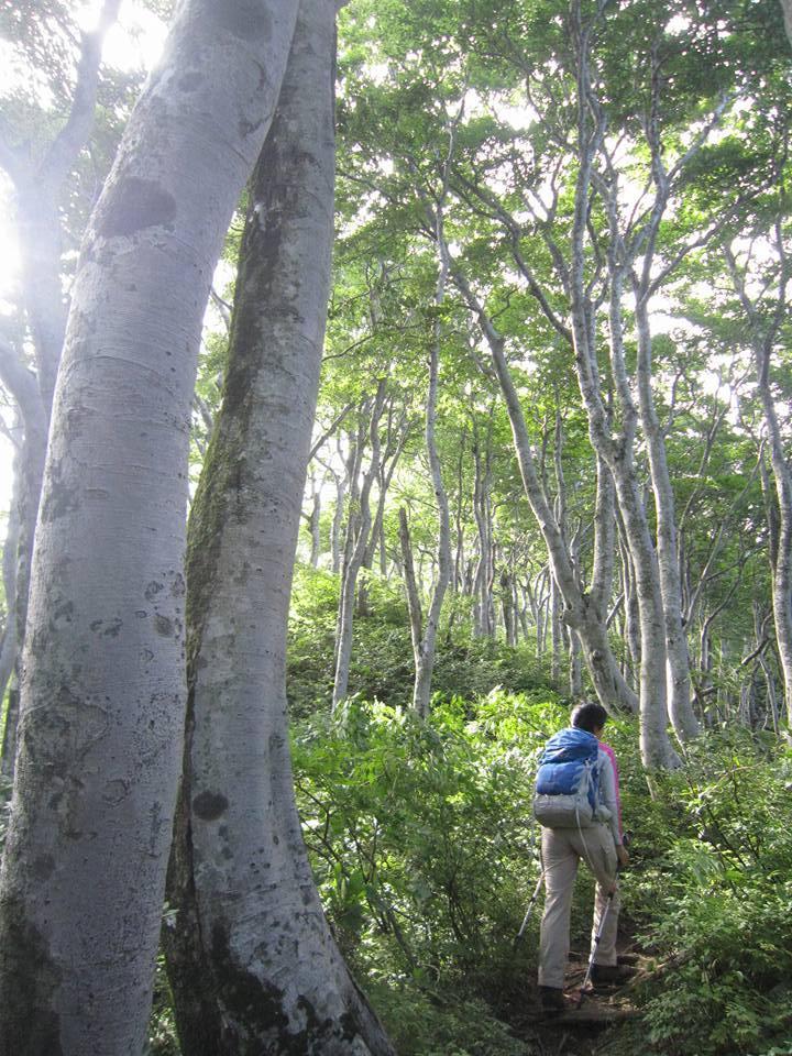 登りだしも 思った以上に涼しく、ブナ林の中もアジサイで一杯です。