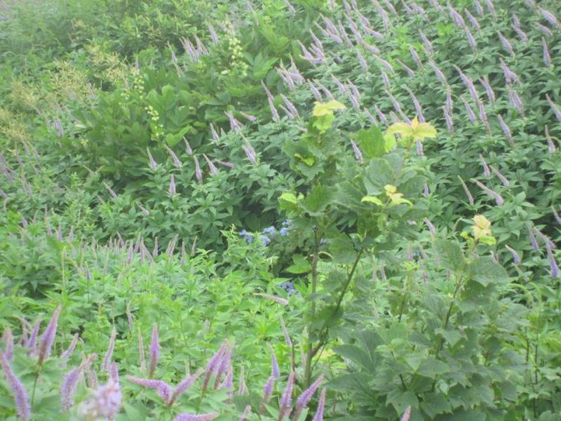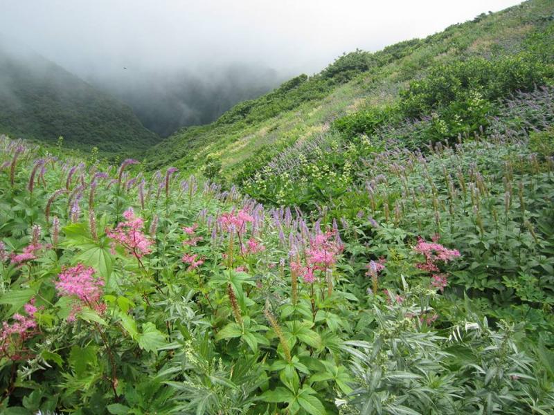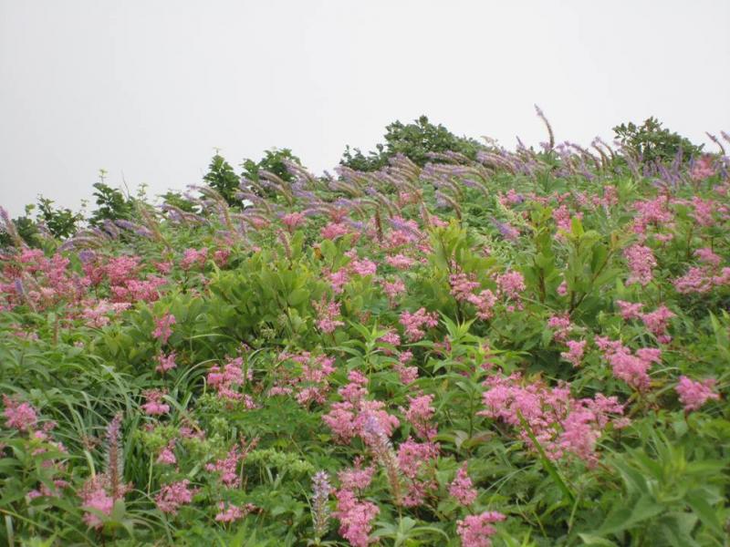 反対側は クガイソウのお花畑。中に ジャコウソウ ダイセンフウロ、 コオニユリ お花で一杯です。