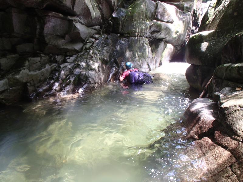 ナメ、ゴルジュ、泳ぎ、滝の登攀、焚火、ヤブ漕ぎと沢登りの醍醐味を存分に味わえる沢でした。