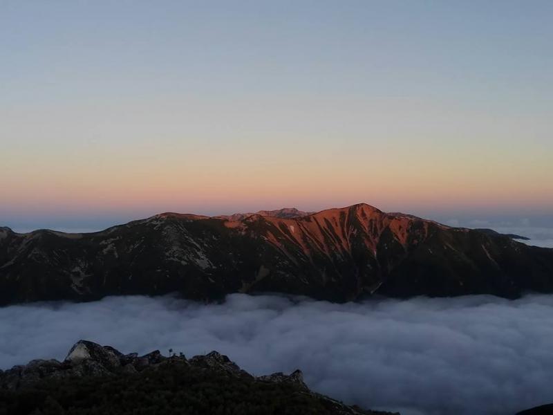 三ツ岳を過ぎたあたりでモルゲンロートを見ることができました。