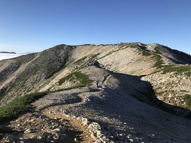 烏帽子小屋~野口五郎岳、真砂岳の稜線はとても長めのいい稜線でした。