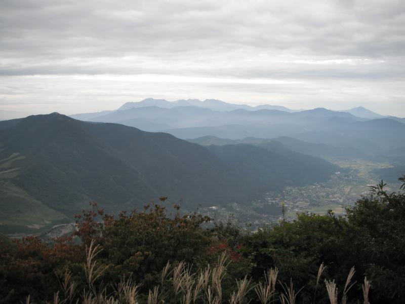 どうにかこうにか東峰到着。登山口から3時間くらいですが結構な充実感があります。のんびりと展望を楽しみ、行動食の柿の種(ゆず塩味)をポリポリ。曇り気味でしたが九重方面など見渡すことが出来ました。