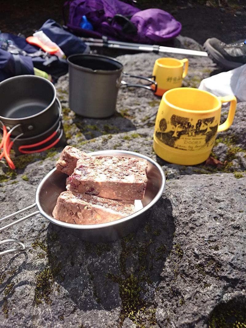 お昼はフリーズドライのビーフシチューやパン、コーヒーを用意しました。