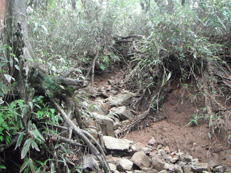 さて山頂までもう少し。今度は滑りやすい道が行く手を阻みます。粘土質でヌルヌルした登山道をだましだまし歩くのに神経を使い、ガレ場の急登を登るとひょっこり山頂に飛び出しました!