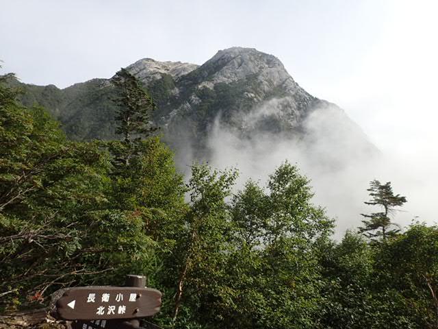 長衛荘を通過し、沢沿いに登っていく。非常に歩き易い道だ。一カ所トラロープが張ってあるが、少々のアクセントくらいで仙水小屋まで快適に進む。ここでレイヤリング調整。身体も温まったことだし、半袖+アームウォーマーに変更。この寒いくらいの、二の腕を少し摩りたくなるような気温が素敵。こういうのはある程度の標高稼がないとないですからね。小屋前の水場で南アルプスの天然水をグビグビいって、ルンルン進んでいたら、あれま、岩ですか。