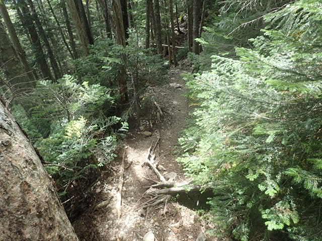 よって、ちょっと本気モード。ストックを一本だけ取り出して、滑るように下山。駒津峰まで良い感じに下って来れたので、いよいよ本腰入れて下りだす。双児山までは、ちょっとガレているが概ね下り易いルートだった。そこからは樹林帯をひたすら、本当にひたすら行く。九十九折になっているのでなかなか高度を下げられないが、夢中で行く。これって永遠に続くのでは?と思い始めた頃、こもれび荘の発電機の匂いがしてきたので、気合いを入れ直して踏ん張った。