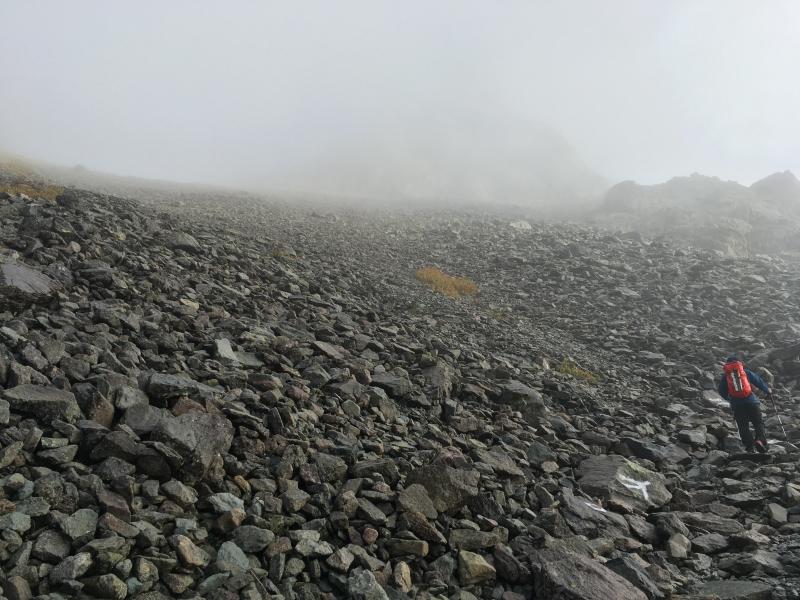 レインシェルを上下着込み、初日のテン場(槍ヶ岳山荘)まで無心に歩きます。