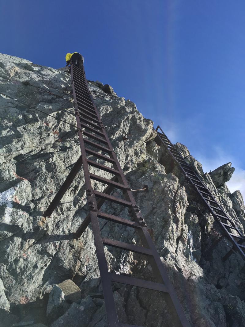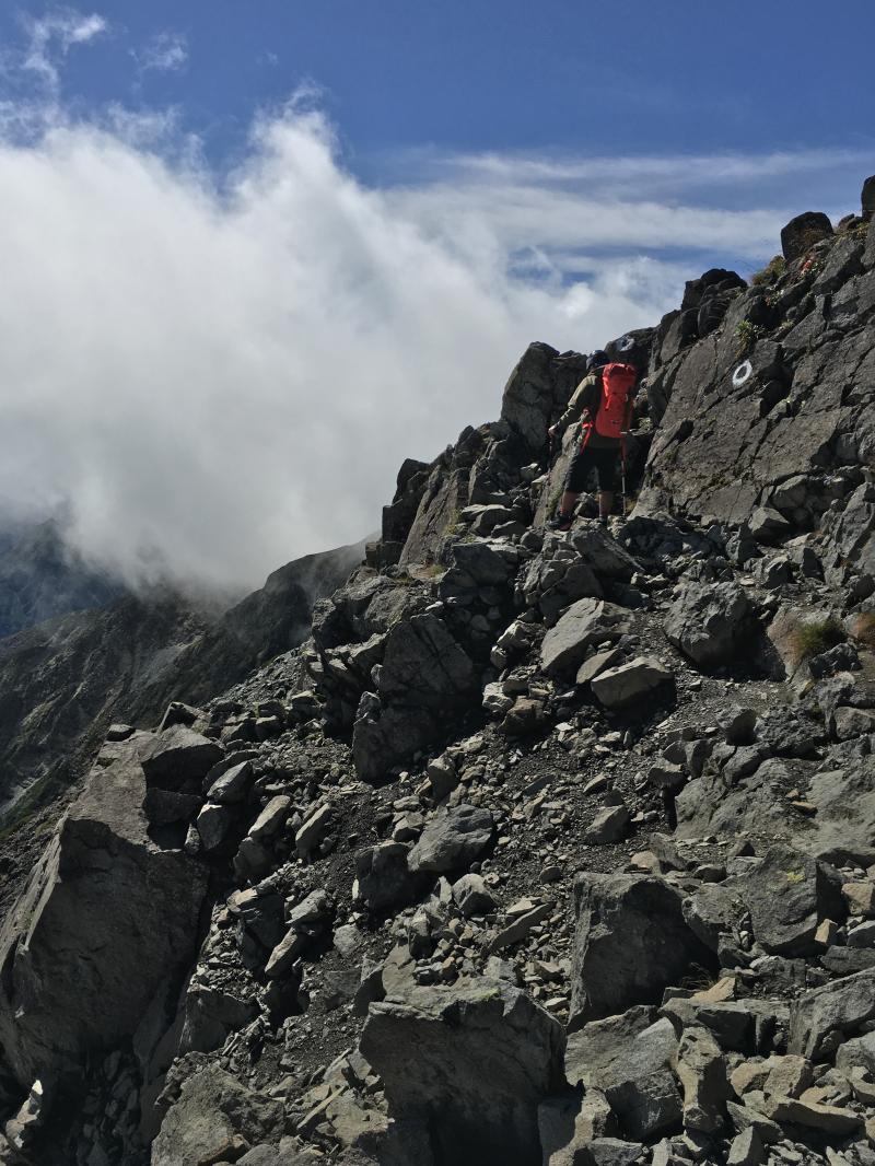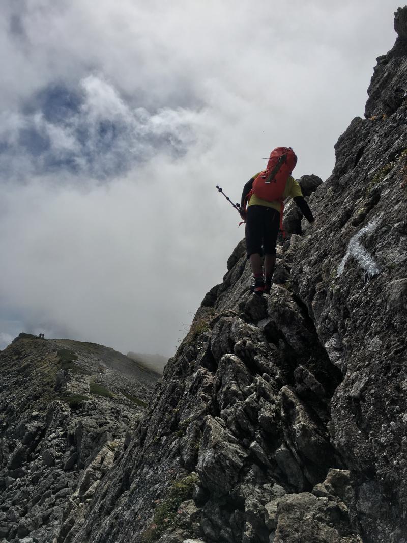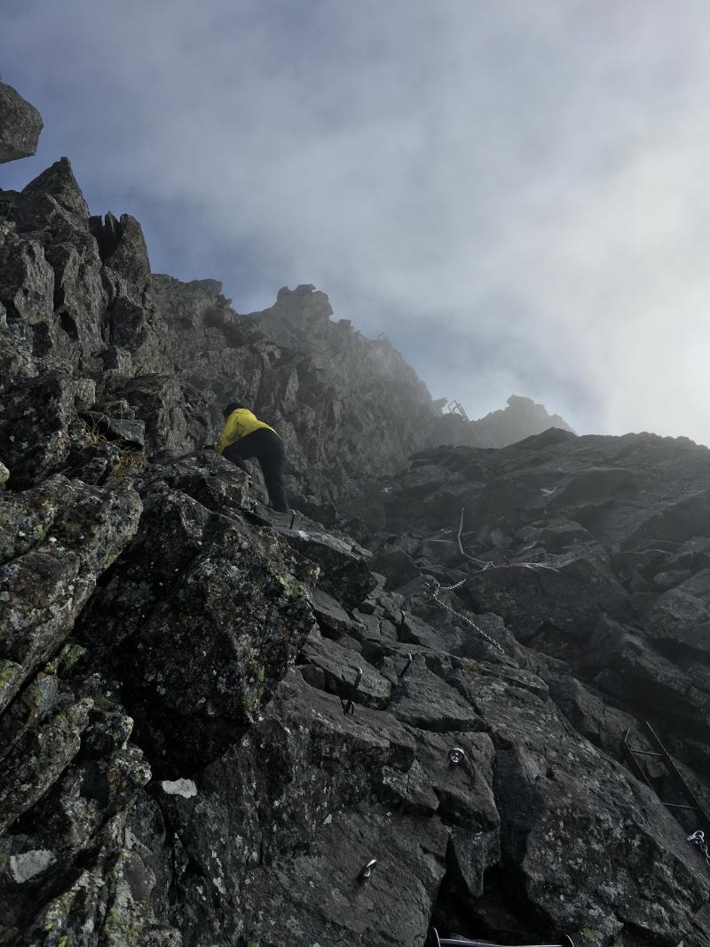槍ヶ岳山頂までの岩場のアプローチ、スリルがあります