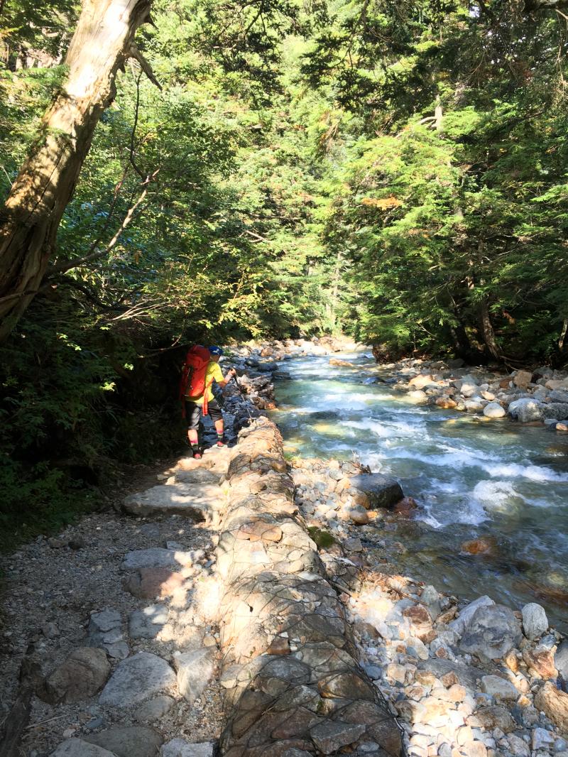 上高地バスターミナル→徳澤園(2時間)→横尾山荘(1時間)→槍沢ロッヂ(1時間半)→天狗原分岐(1時間半)→殺生ヒュッテ(2時間半)