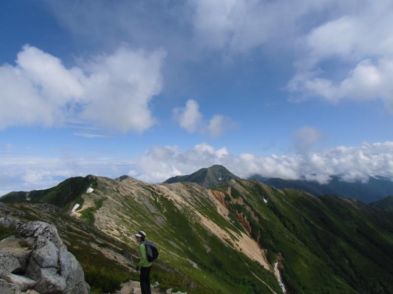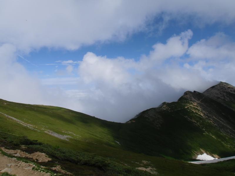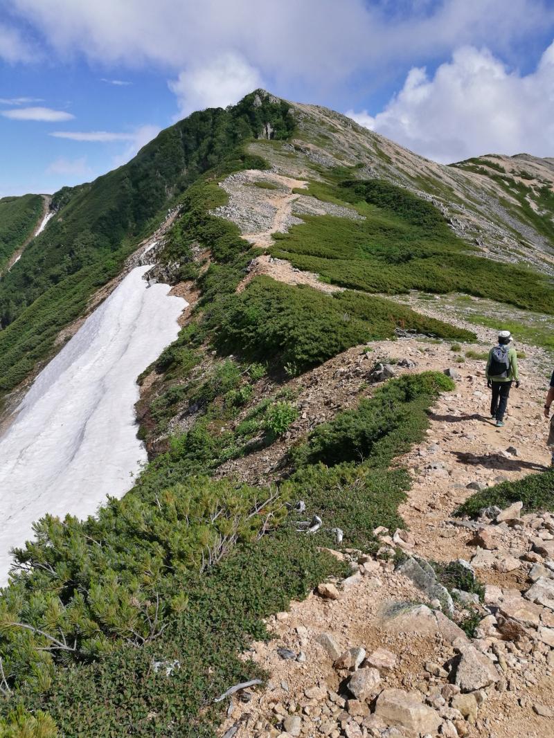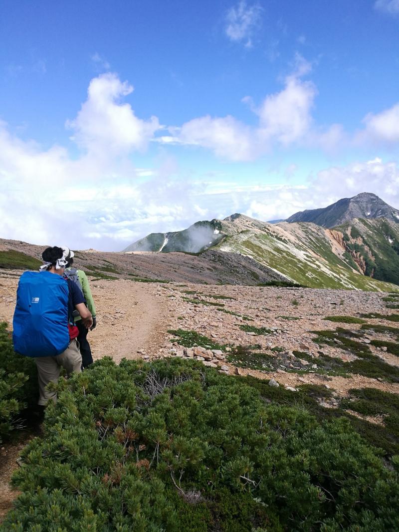 常念岳までの道はなだらかで歩きやすく、晴れ晴れとした空を仰ぎながら最高でした。