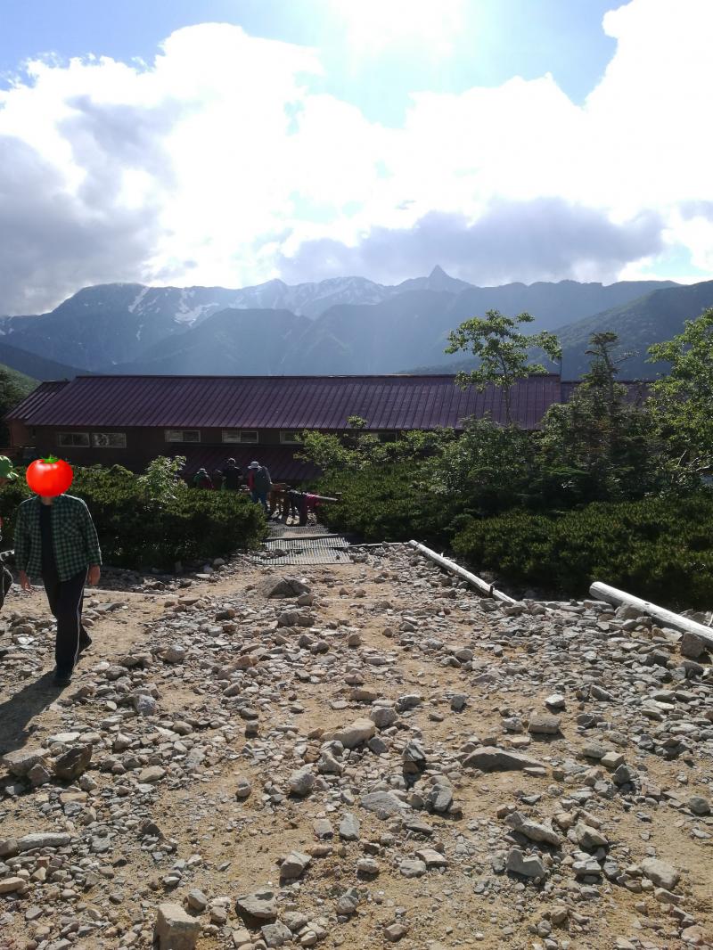 蝶ヶ岳ヒュッテに着いた頃にはまぁまぁ晴れ