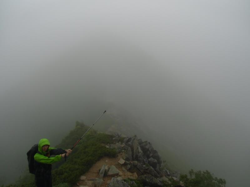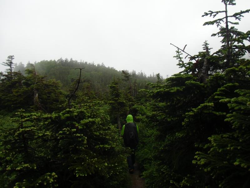 樹林帯はまだいいが、木々が少なくなって稜線基調になってくると雨が邪魔くさい。