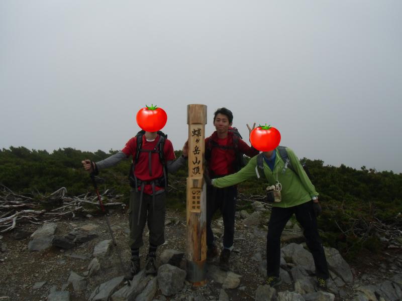 6:10常念小屋(105分)常念岳(170分)蝶槍(45分)蝶ヶ岳ヒュッテ(10分)蝶ヶ岳山頂(10分)蝶ヶ岳ヒュッテ(100分)まめうち平(85分)三股駐車場14:55