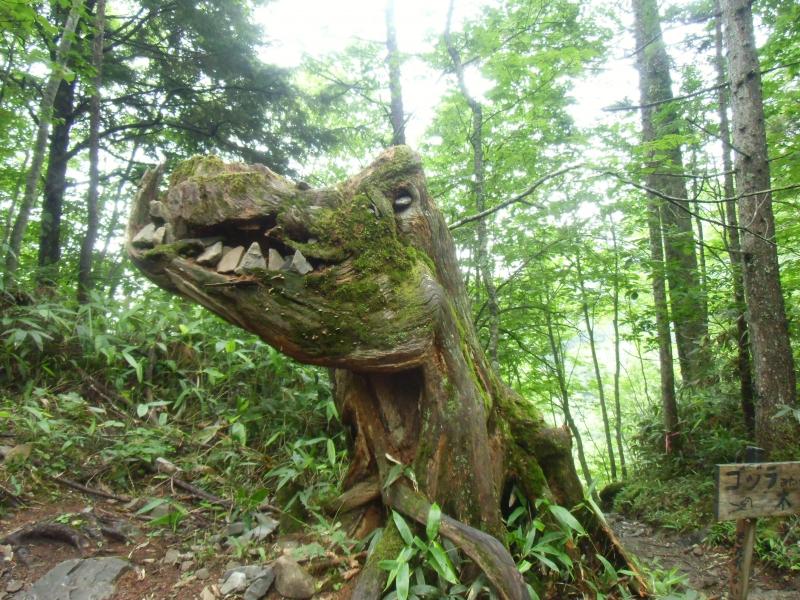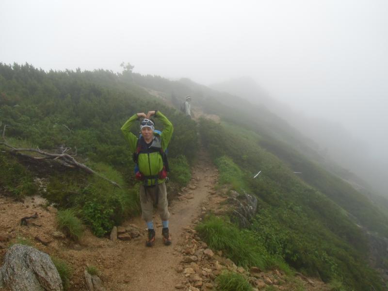 蝶までの道半ばを過ぎると樹林が多く、木々の雨摘が顔にびしゃびしゃ当たる。