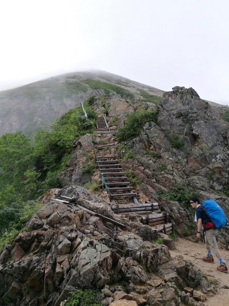 蝶ヶ岳までは岩場をゴリゴリ下る。