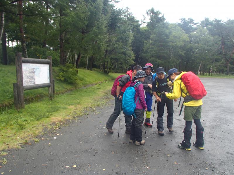 ・各地から参加者が飯綱山の駐車場に集合し、ワイワイと喋りながらスタート。鳥居のある南登山口までしばらくは車道歩きです。