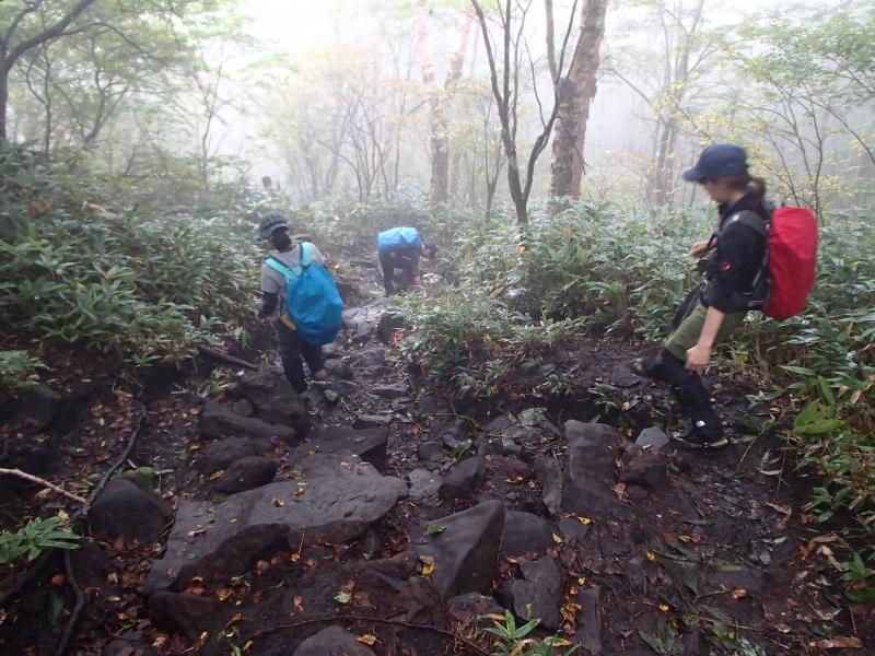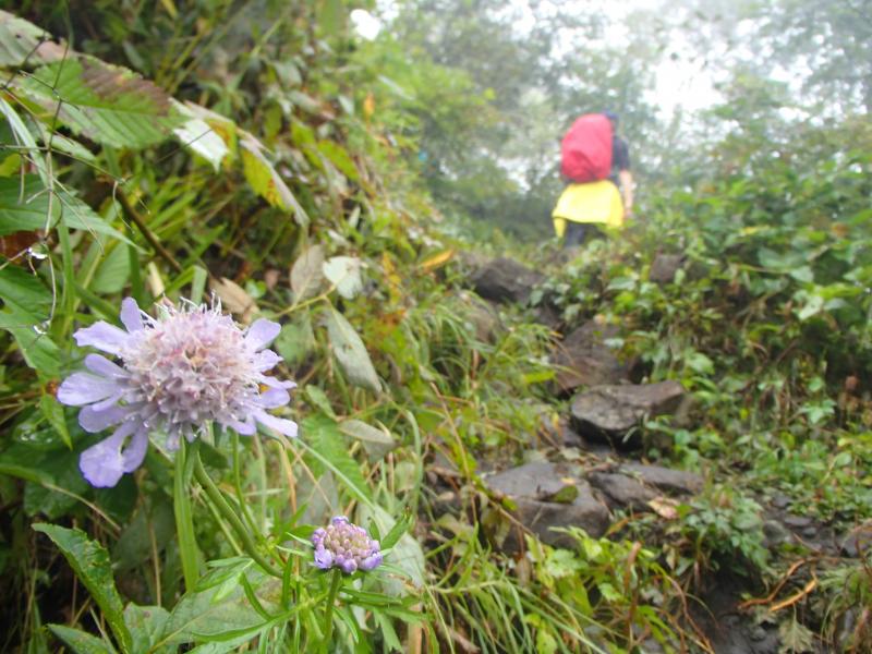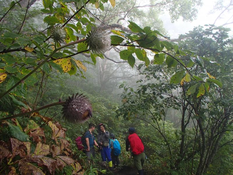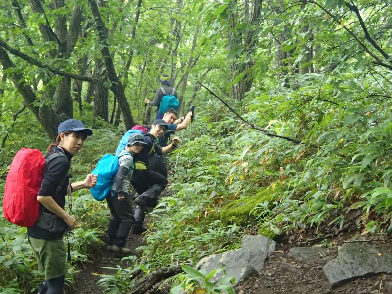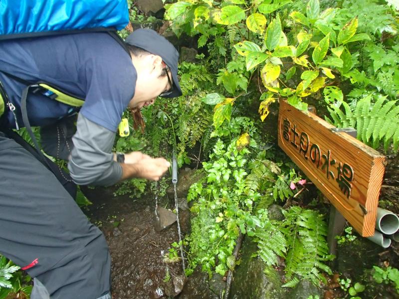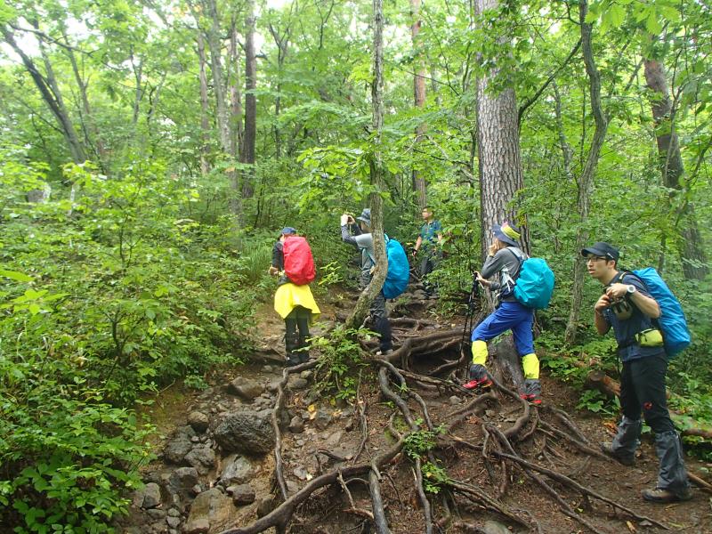 ・駒つなぎの場所で少し休憩を取り行動開始。じっわじわと高度を上げていきます。森の中を歩くコースなので全く展望はありませんが、大きなヤマホグチが咲いていたり、きれいな水場があったりと、結構飽きずに歩けました。