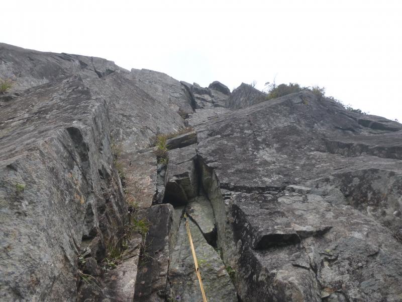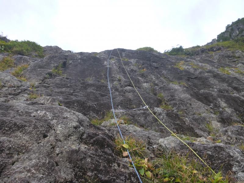 草付ルンゼを登り、最終ピッチの5.7くらいのクラックを登ると山頂に着きます。