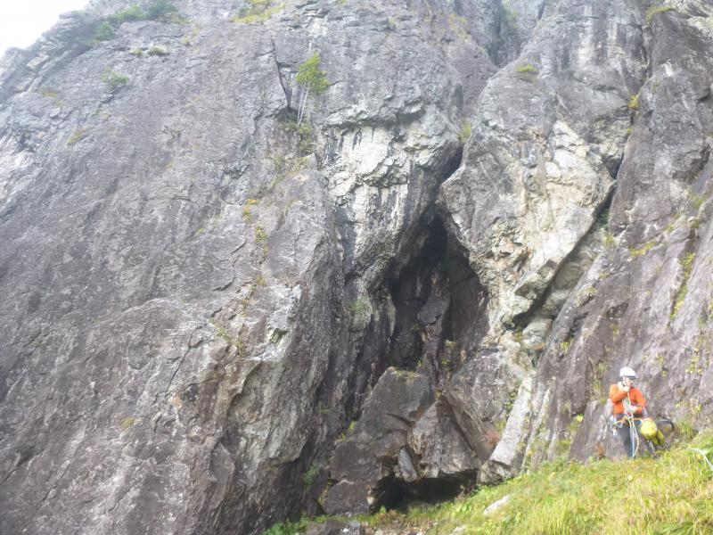 大洞穴からは穴の横からテラスまでのクラックを登るピッチと