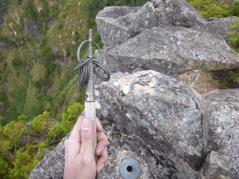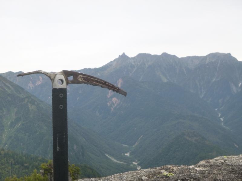 山頂から踏み跡をたどり南側の有名なピッケルが刺さったピークへ向かいます。