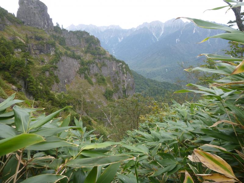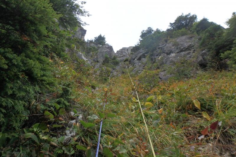 コルからは笹藪を漕ぎながら下りていくと錫杖沢になり、