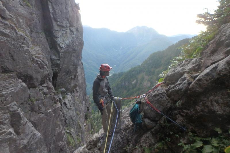 - 錫杖沢出合(50)北沢大滝横1P目(7時間)錫杖岳山頂(100)錫杖沢出合(60)槍見館