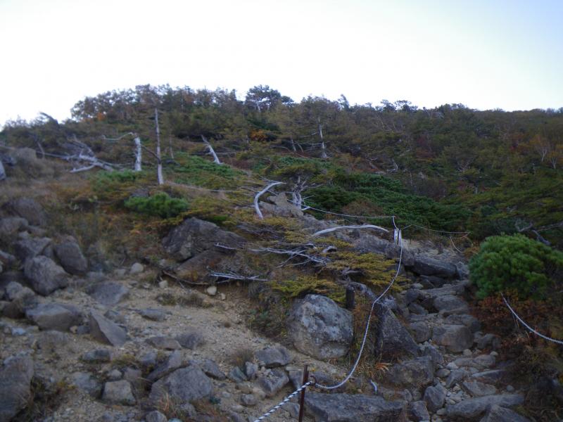 ②蓮華温泉から白馬大池までは天狗の庭までが樹林帯の上りで苦しいですが、そこから先はトラバース気味に楽な道です。1箇所だけロープが張られた急な部分があります。