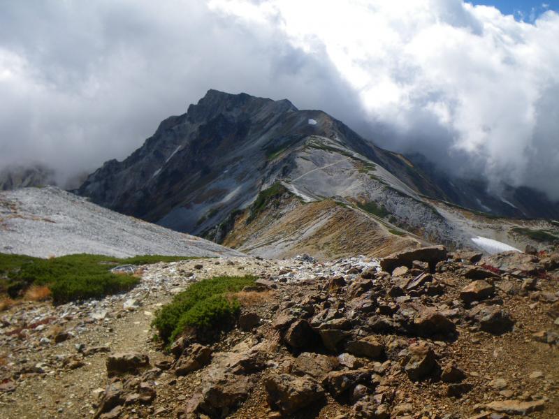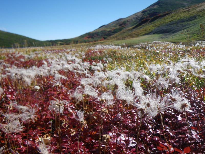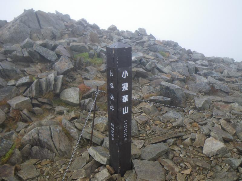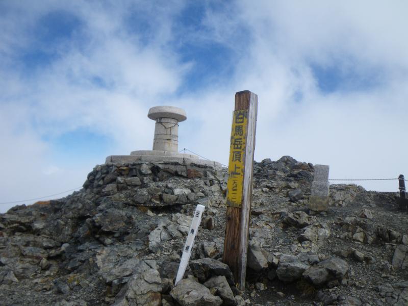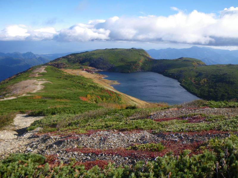白馬岳への登路としては日本三大雪渓の白馬大雪渓が一般的で、ロープウェイを利用した栂池高原からのコースも人気が高い。今回は蓮華温泉の野露天風呂に浸かりたい為に1泊2日山行を計画するも、9月28日は悪天候で9月29日だけの日帰りに計画変更し、風吹大池をカットすることになりました。白馬大池に至るコースとしては栂池高原からの方が近く、蓮華温泉からはやや時間がかかります。しかし、紅葉は雪倉岳方面の展望が最高で天狗の庭など見所が多く、長く歩く価値はあります。白馬大池は北アルプスの中では風吹大池に次ぐ大きさで雨乞いの神を祀る霊地として崇められてきました。この白馬大池の光景は稜線上からとてもマッチし、すばらしい景観です。今回は秋山ということで、太陽の光に輝くナナカマドの赤い実やチングルマの白い果穂が見頃です。午前中は白馬の主稜線にはガスがかかり、強風で小雨混じりの悪天で、展望は見えずでしたが、帰りは天候が回復し、小蓮華岳から白馬の主稜線がくっきり見えました。私は無雪期にこのあたりに来るのは3回目ですが、三国境近辺の白い山肌が何とも言えず、大好きです。白馬岳山頂付近では雨交じりの強風で10m以上はあったと思います。白馬山荘に下りるのが向かい風で辛く、近くに雷鳥がいたのに見に行く気力もなし。山荘の天気予報では小雪の文字もありました。帰りは逆に追い風で体を押してくれる感じで楽に歩け、時間短縮に繋がりました。
