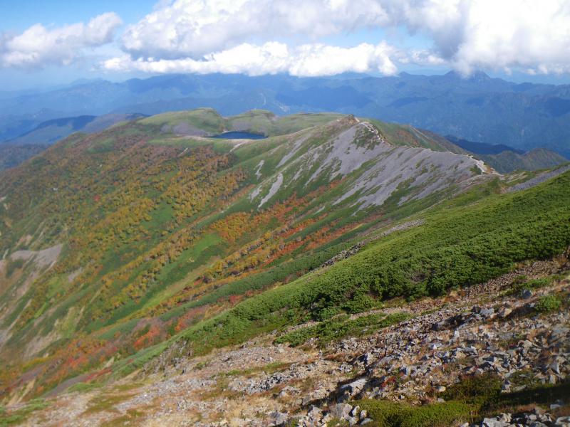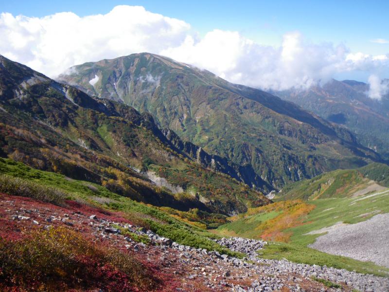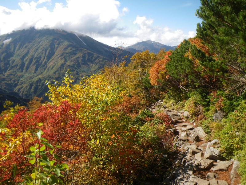 ③天狗の庭付近から上部が紅葉の見頃で雪倉・朝日方面がきれいです