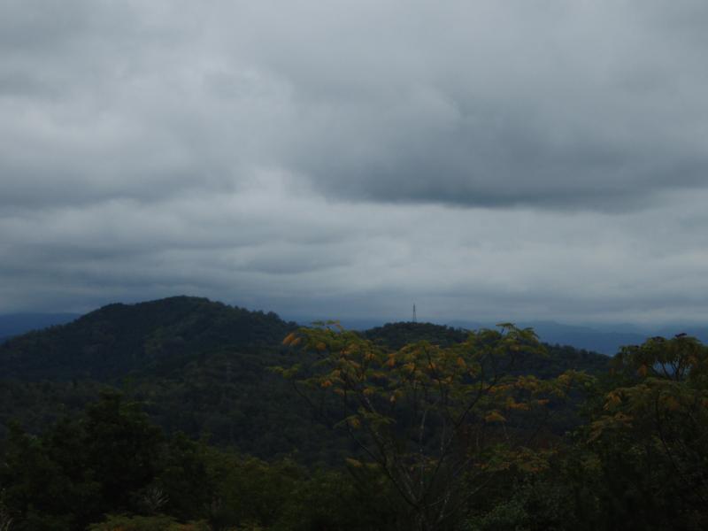 標識は1箇所のみでしたが迷うこともなく半時間ほどで南宮山の山頂に到着。三角点あり、展望あり。気温24度。無風状態で蒸し暑い。古の時代には烽火台が設置されていたといい、狼煙をあげるには風の動きが少ない方が好ましく、展望もきく事から南宮山が選ばれたようです。