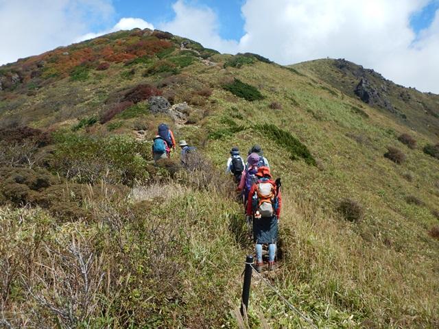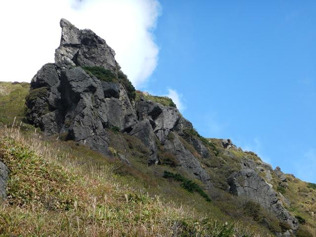 扇ヶ鼻分岐の先の西の肩から上りましたが、2カ所ほど、岩を登る箇所があります。