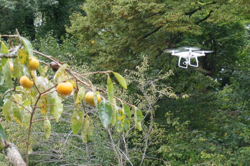 ホバリングするドローンに鳶が威嚇しているのをマネしたり、