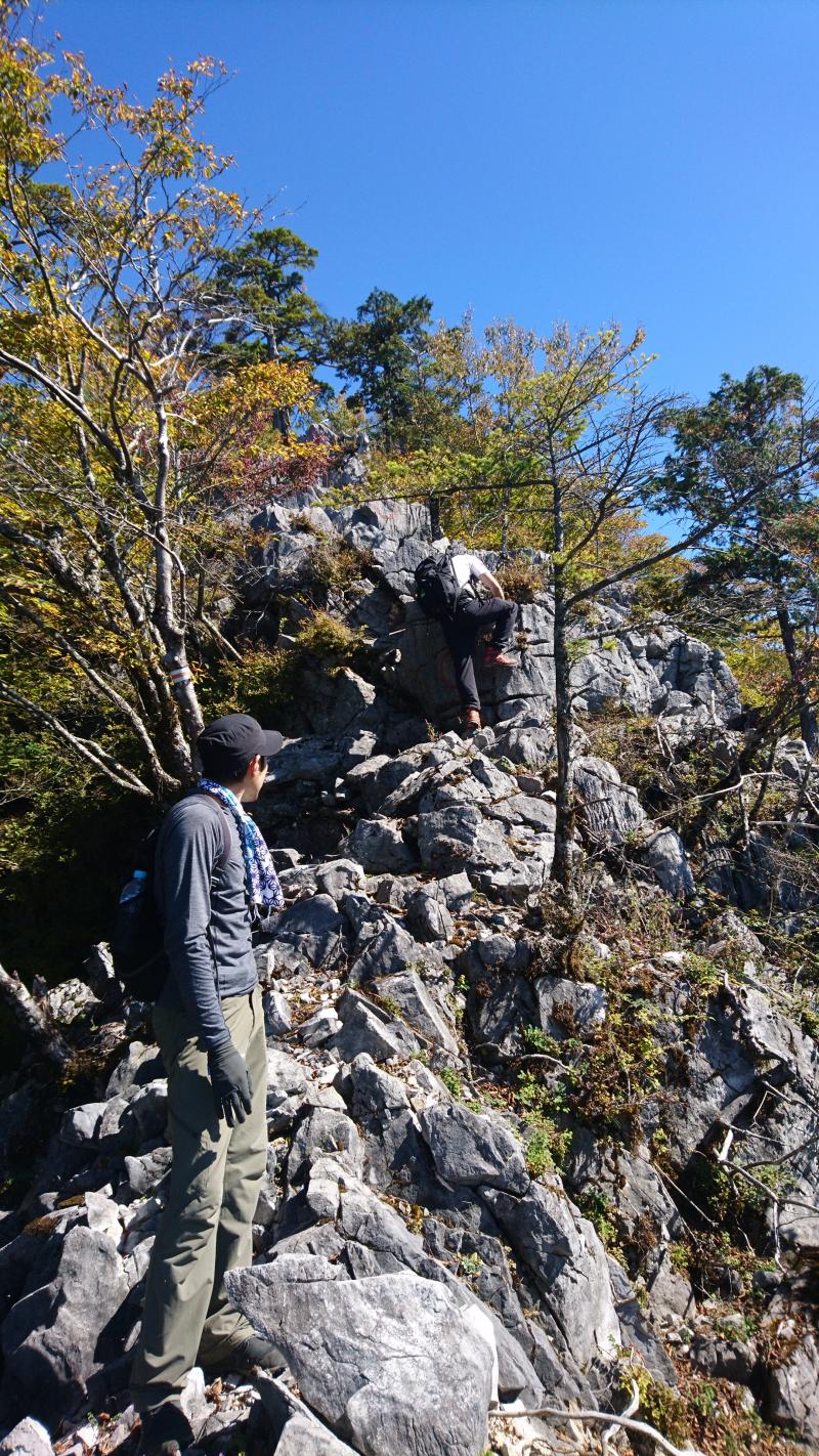 稜線に出たあとは岩場の連続で気を抜く暇もありません。