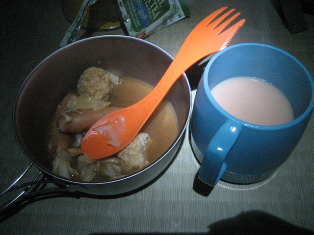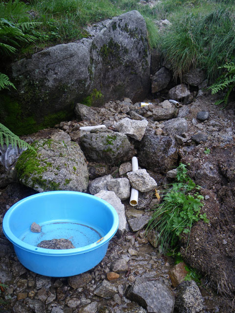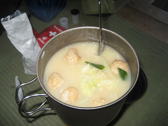 避難小屋利用の場合は、私達が行った時の水場は、本当にチョロチョロしか出てなかったので、水を持って行くべきだと思います。