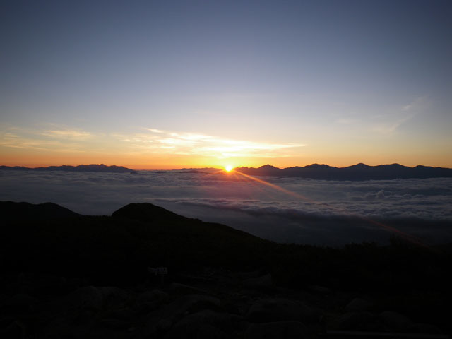 2日目:檜尾避難小屋6:25→檜尾岳6:35→木曽殿越9:30→空木岳11:00→ヨナ沢の頭12:30→池山小屋14:20→菅ノ台15:40