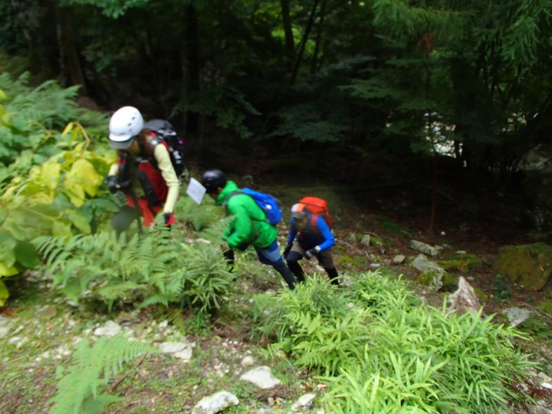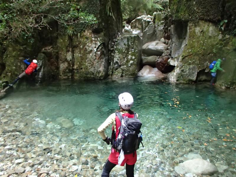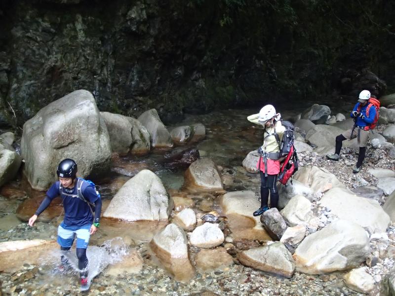 ・どうやら入渓点からの歩き出しを間違えていた様子。それを聞いた女帝の一言。「前鬼ブルーと沢の色が違うと思ってたわ。」・・・、言ってよ、先に・・・。