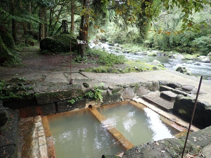 塩浸温泉-(1時間30分)-和氣神社-(15分)-犬飼の滝-(15分)-和気湯-(30分)-妙見温泉