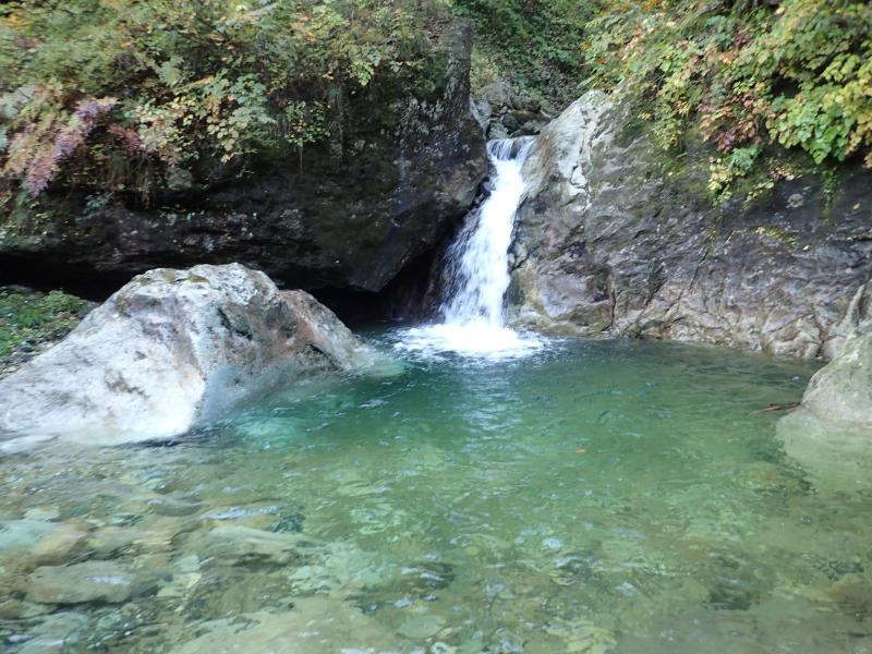 - 登山口(35分)ソウケエ新道分岐(60分)シジミ沢出合(滝直前)(80分)御前ヶ遊窟(35分)井戸小屋山(60分)車道(30分)登山口