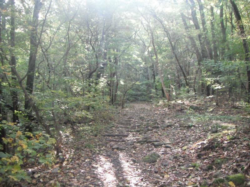 急で滑りやすい道とちょっとした岩場があります。