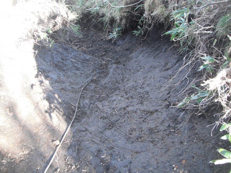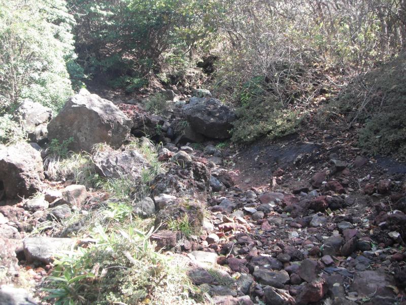 こちらも急斜面、滑りやすい上、ヤブで通りにくい、踏み跡が見えにくい、さらには特に楽になるわけではないなど、よほどのことがない限り通らないほうがよさそうです。
