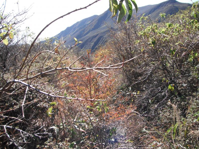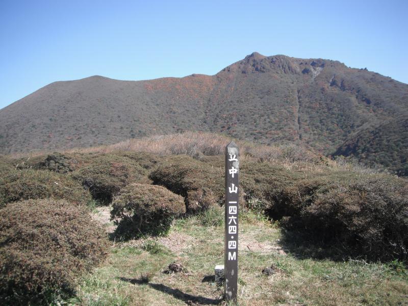 さてテントに荷物を置いて、最低限の装備で白口岳を目指します。鉾立峠までは歩きやすい道。ちょっと寄り道して立中山に登ってみると目の前に大船山の見事な紅葉!後で聞いたら大混みだった模様。