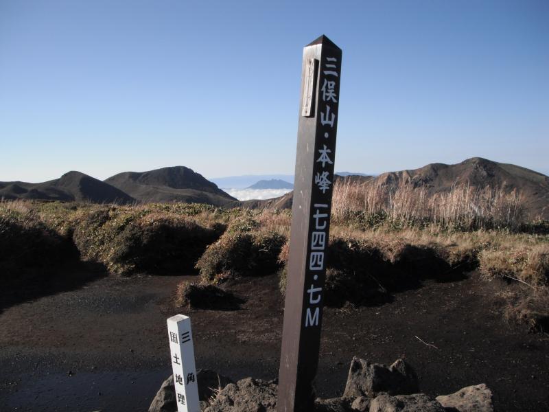 2日目 法華院温泉(60分)諏蛾守越(30分)三俣山西峰(30分)三俣山本峰(20分)三俣山南峰(70分)諏蛾守越(80分)長者原