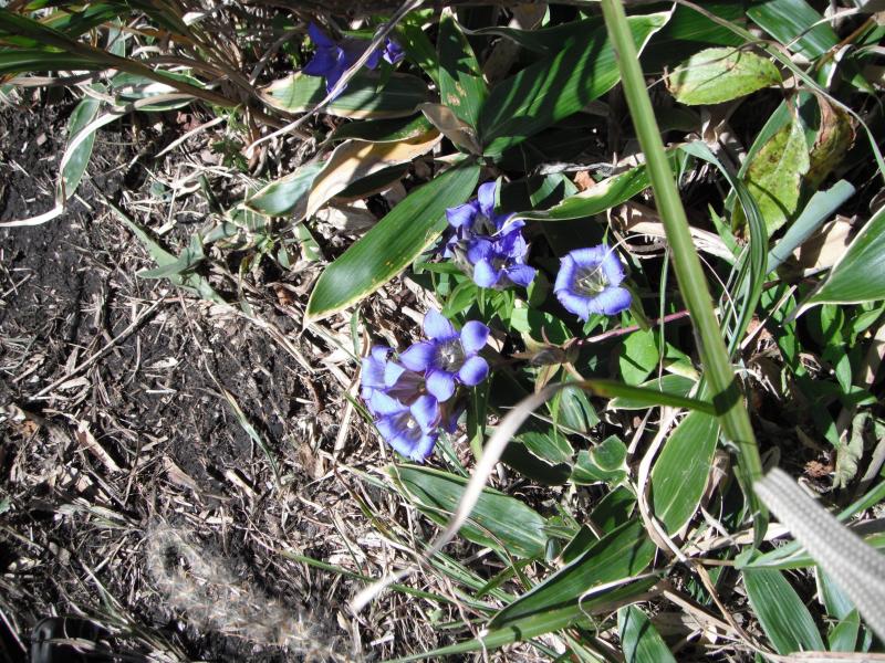 下りは山と高原地図だと破線ですが直接西峰登山道に出るコースを取りました。ところがこれがすごい道!とにかくヤブ化が進んでいて踏み跡は見にくいわ、ヤブが引っかかって歩きにくいわ、滑って転ぶわ、大変でした。ただリンドウはたくさん咲いていたので多少の慰めにはなりました。