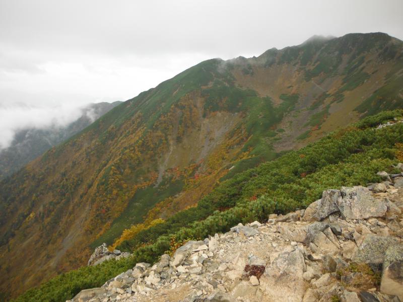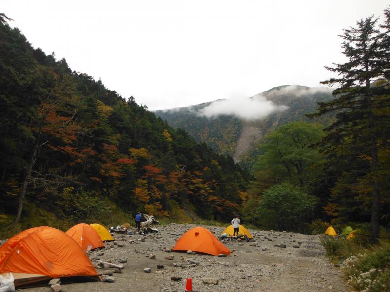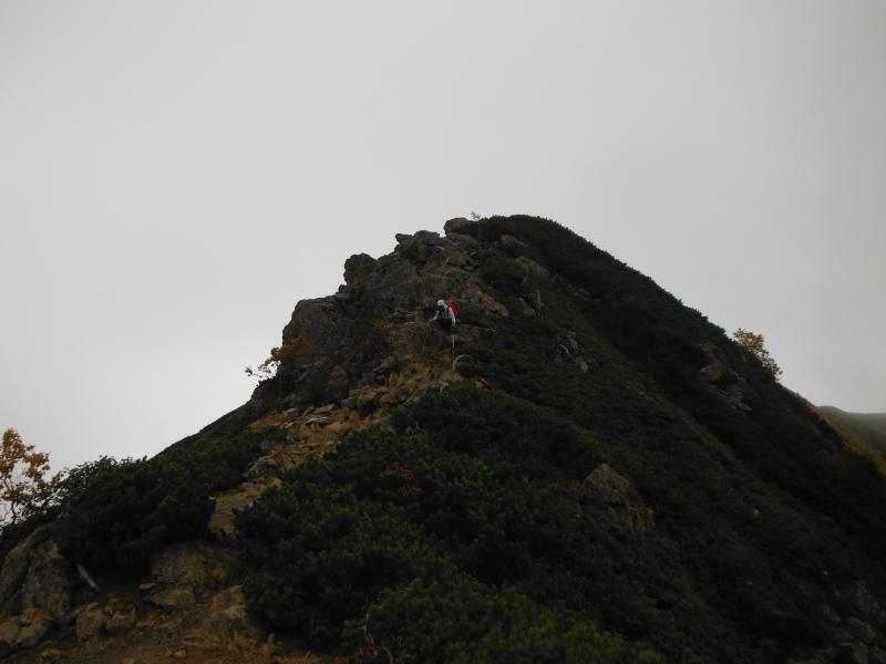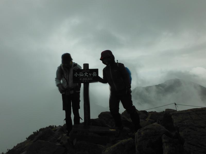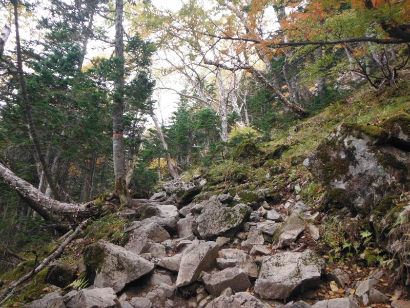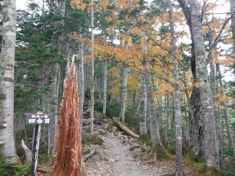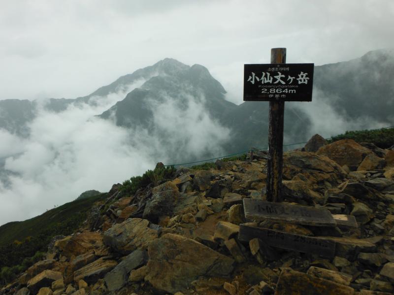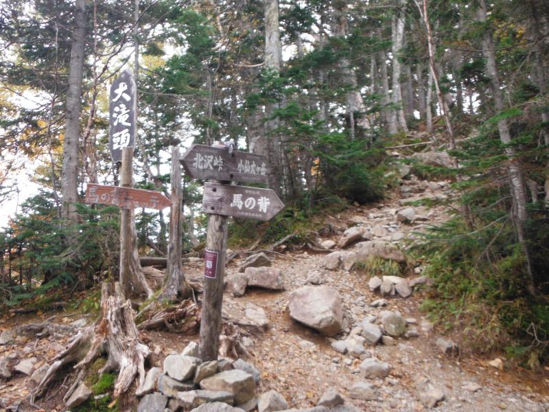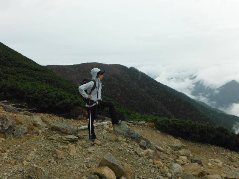 - 北沢峠(35)→ 二合(90)→大滝ノ頭(80)→小仙丈ケ岳(60)→仙丈ケ岳(20)→仙丈小屋(30)→馬ノ背ヒュッテ(40)→大滝ノ頭(60)→北沢峠