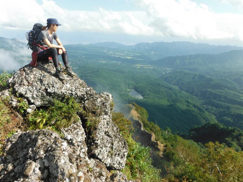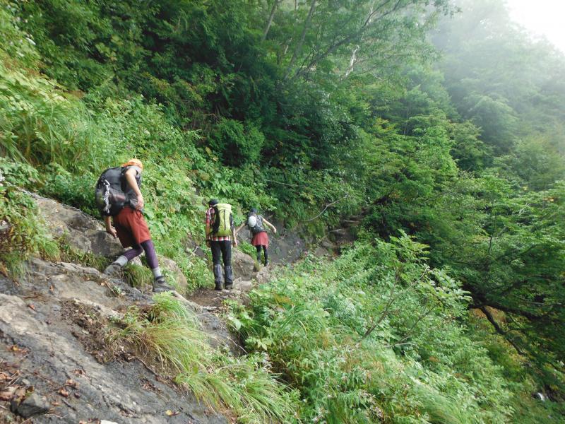 - 戸隠牧場登山口(80)→滑滝(60)→一不動避難小屋(75)→九頭龍山(60)→戸隠山(15)→ 八方睨(8)→蟻の塔渡り(15)→胸突岩(37)→百閒長屋(45)→戸隠神社奥社登山口
