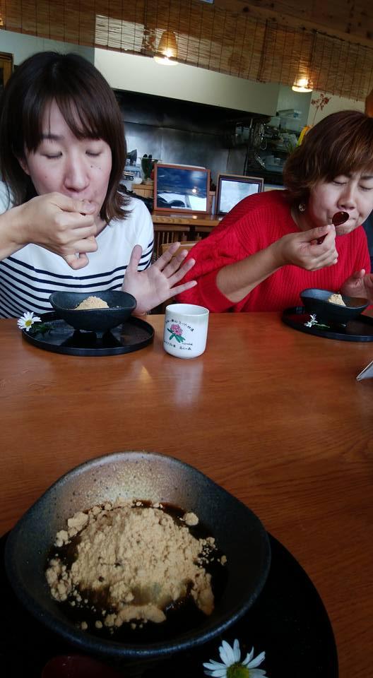 デザートは、岳人名物のワラビの茎をたたいてとれたワラビ粉を使っての「ワラビ餅」をいただきもう動けない(笑)