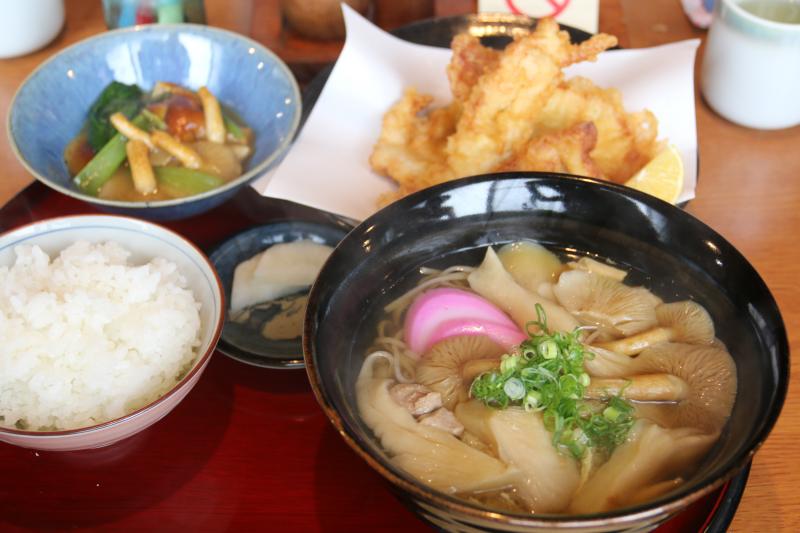 なめこ尽くしの定食と天ぷらは絶品です。キノコの出しのうまみと、さっぱりしたとり天で、満足、満腹です。